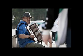 Se promener dans la rue et capter des regards est une chose passionnante. Toutes sortes d'expressions d'en dégagent. Ici un accordéoniste est en train d'essayer de capter l'attention des passants par sa musique et son savoir faire avec cet instrument. Merci à lui pour ce regard.