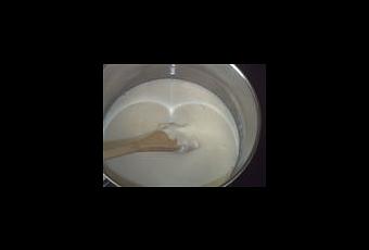Versez sur le mélange le lait à la vanille, en remuant ou en fouettant.
