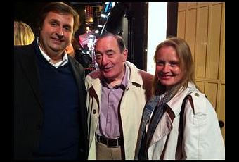 Jean Patrick DOUILLON, Pierre ETAIX et sa compagne devant le théâtre des DEUX ÂNES.