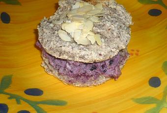 - Sur un des macarons, ajoutez quelques amandes effilées sur le dessus