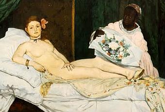 Faut-il rappeler que l' "Olympia" de Manet a été jugée comme indécente lors de sa présentation lors du salon de 1865 : en cause, la représentation, appelons les choses par leur nom, d'une "pute" et le style du peintre dont on considérait qu'il peignait "mal". On la décrochera trois jours après l'ouverture du salon : les organisateurs du salon manquaient singulièrement de flair ...