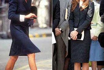 Ainsi elle a essayé tant bien que mal d'adapter son style vestimentaire au style royal... Pour ce il n'y eu pas de meilleur modèle pour elle que la princesse Diana. En son temps, elle fut adulée par le peuple anglais et admirée pour son style à la fois très élégant mais aussi moderne... Aussi il ne fût pas très étonnant de constater que Kate Middleton, aujourd'hui princesse de Galles, s'inspira de près des looks de la regrettée princesse Diana...