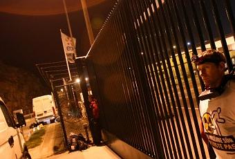 - deux camions ancrés dans le sol bloquent les grilles d’entrée du chantier ;