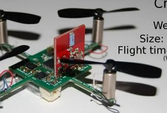 Pesant 20 grammes pour un diamètre de 12 centimètres, ce mini quadrocopter réalisé par Arnaud Taffanel, Tobias Antonssonnet et Marcus Eliasson est doté d’un couple de gyroscopes qui le maintiennent en positions, d’une batterie 110 mAh LIPO et est contrôlé par un émetteur radio (2.4Ghz). C’est assez amusant si ce n’est qu’il fait encore un peu trop de bruit pour un robot espion^^ comme le montre la vidéo dans la suite.