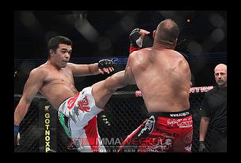 Lyoto Machida a mit KO la légende Randy Couture avec un "flying front kick" au visage à 1:05 du deuxième engagement. Machida a donné le crédit après le combat à son père ainsi qu'a monsieur Steaven Seagall pour lui avoir enseigné ce cou. Rappelons que Machida s'entraine régulièrement avec Anderson Silva qui lui aussi, à son dernier combat, a utilisé un coup presque identique pour mettre KO Vitor Belfort à l'UFC 126 ; lui aussi avait donné le crédit à Steaven Seagall pour l'enseignement de ce coup.