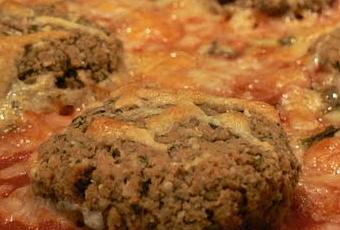 Ensuite il ne vous reste plus qu'a mettre la sauce tomate, des pepperonis (chorizo doux) végétariens ou pas, du fromage, les boulettes et autre garniture de votre choix sur la pizza et de la passer au four jusqu'a ce que ca dore.