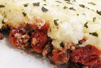 > Coupez les tomates séchées en petits morceaux et déposez-les par dessus la viande.