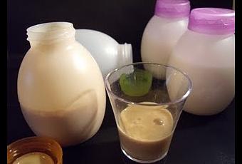 - Fermer les pots et mettre au frigo. Au moment de déguster agiter vigoureusement et boire à "la bouteille" ou avec une paille ;-)