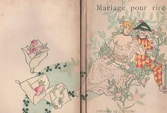 Emile Blémont : Mariage pour rire. Comédie en 1 acte en vers. Librairie de La Plume, Bibliothèque Artistique et Littéraire, 1898, in-12, 60 pages - catalogue des publications de la Société anonyme "La Plume". Illustrations d'Emile Caussé, couverture et frontispice en couleurs.