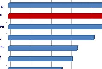 Par contre, pour la barre rouge, qui indique la corrélation entre top rankings Google et nombre de textes (d’autres sites) faisant de liens vers le site, je parlerais de rapport cause à effet: si un site reçoit de liens de qualité venant d’autres sites, il sera bien classé par Google, au moins qu’il ne soit mal optimisé ou mal indexé (trop de flash, etc.).