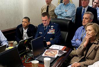 La photo du jour, c’est sans aucun doute celle du président Obama et de ses conseillers en train de regarder sur des écrans en direct l’opération militaire des commandos marine américains contre Ben Laden.