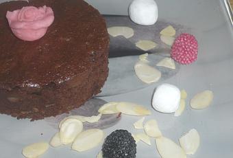 100g de farine, 180g de sucre, 240g de beurre, 300g de chocolat noir pâtissier, 50g de cerneaux de noix, 50g d'amandes entières, 100g d'amandes en poudre, beurre pour le moule