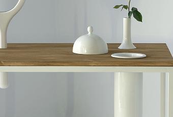 Minimaliste, un look scandinave alliant bois et blancheur, Maria Perales ajoute à une simple table un ensemble d’accessoires du quotidien : miroir, vase, chandelier… (même si bon, je suis d’accord je n’utilise pas de chandelier tous les jours)