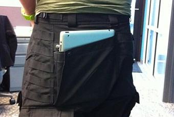 L’iPad 2 dans votre poche grâce à Warrior Wear tactical pants. Bien essayé, mais pas sûr que cela soit très pratique.