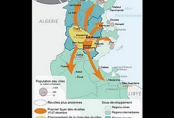 Dossier "Une cartographie géomédiatique de la crise tunisienne", Collège International des Sciences du Territoire :I/ "Pourquoi Sidi Bouzid ?" / "Une chronologie des événements tunisiens"II/ "Les inégalités régionales en Tunisie" (Transition démographique et exode rural / Une fracture sociale et territoriale / Une métropolisation au profit du littoral / Synthèse : les trois Tunisies)III/ "La blogosphère tunisienne au centre du monde" / "Quelques données sur la diaspora tunisienne"IV/ "Les partenaires économiques : le cas des IDE"V/ "Unité et diversité des situations démographiques des pays d'Afrique du Nord en 2010" (Zoom sur les différences démographiques régionales des pays du Maghreb / Géographie du peuplement maghrébin : une population urbanisée et littorale)Des billets, des entretiens, des articles :- Marc Lavergne, "Après la Tunisie, l'Egypte : les raisons de la colère", TV5 Monde, entretien réalisé par Sylvie Braibant, 26 janvier 2011.