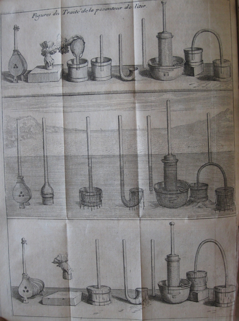Blaise Pascal (1623-1662) fréquente dès 1635 le cercle de mathématiciens de Marin Mersenne où il côtoie des savants comme Roberval, Gassendi, Mydorge ou Desargues. Après ses recherches sur les coniques et la conception de la première machine à calculer, ce sont les expériences sur le vide, à la suite des travaux de Torricelli, qui occupent pleinement Pascal. De 1646 à 1654, il multiplie ses propres expérimentations avec toutes sortes d'instruments. L'une d'entre elles, décrite en détail dans Récit de la grande expérience de l'équilibre des liqueurs (1648), lui permet de confirmer la réalité du vide et de la pression atmosphérique et d'établir la théorie générale de l'équilibre des liqueurs. Pascal est également à l'origine de l'invention de la presse hydraulique, basé sur le principe qui porte son nom et qui veut que, dans un fluide incompressible en équilibre, les pressions se transmettent intégralement.Ces résultats se trouvent dans un célèbre ouvrage publié en 1663 après la mort de Pascal par son beau-frère Étienne Périer. La seconde édition, identique à l'originale, est publiée en 1664. Une troisième édition a paru en 1698 (Paris, Desprez, 1698, in 12 ;(26), 238 pp, 2 pl.)