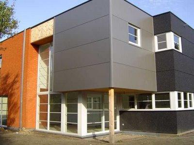La finition extérieure dépend entièrement des souhaits du client : elle peut être en maçonnerie, en crépi, en bois, en panneaux industriels d’aspect métallique, stuquée ou en granules de pierre naturelle. La finition intérieure se base sur des plaques de plâtre ou fibro-plâtre.