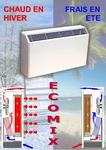 L'Ecomix est équipé de trois ventilateurs centrifuges à ailettes arrière fonctionnant au tiers de leur vitesse maximale. En application domestique, il est ainsi possible d'obtenir un niveau de bruit de fonctionnement extrêmement faible (de l'ordre de 30 dbA) qui convient également pour les chambres à coucher. En application tertiaire ou dans des environnements sonores plus bruyants, l'appareil garde alors une énorme réserve de puissance de ventilation qui permet, lorsque c'est souhaité, une puissance calorifique ou frigorifique importante et des remises très rapides à température.