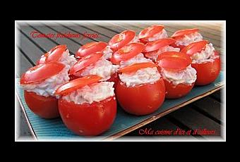 je vous propose aujourd'hui de petites tomates idéales pour un apéritif en terrasse au soleil avec un bon petit rosé frais...