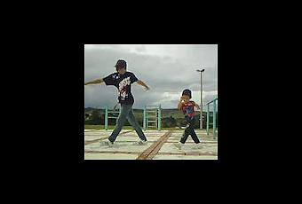 Rafa Anjinho, le jeune homme et Gaa Alves l'enfant font un duo de danse free step.