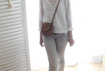 Pour ma part, j'avais envie d'un jean clair. La quête du slim rose pâle ayant été infructueuse, je gardais néanmoins l'idée en tête. Et c'est finalement chez Stradivarius que j'ai trouvé mon petit slim clair !