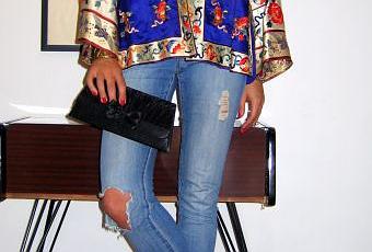 Au menu du jour : Kimono vintage, Jean Asos, tee-shirt H&M, escarpins Zara.