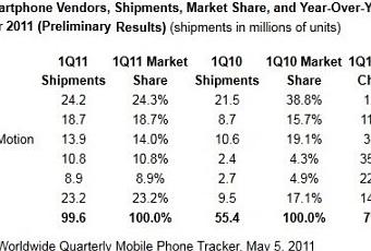 Sur un an (1er trimestre 2010 vs 2011), le marché des smartphones a progressé de 80% dans le monde, selon IDC ! C’est Nokia qui est encore leader avec 24,3% de part de marché, devant Apple (18,7%) et RIM (14%). Si Nokia accuse une baisse de sa part de marché, ses ventes augmentent légèrement, Apple, HTC et surtout Samsung sont en forte hausse avec respectivement 114,4%, 229,6% et 350% !