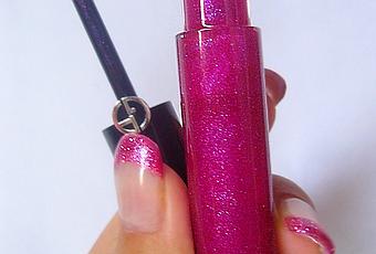 Mais y a 2 jours je me suis faite faire une tite french pailletées fushia et la je décide de ressortir les produits qui se baladent dans mon bureau et je tombe sur un gloss Armani pile poil comme mon vernis ! o yeah soyons fou !
