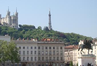 La place Bellecour, à Lyon, est la troisième plus grande place de France. Au centre, une statue de Louis XIV et au loin, vous pouvez apercevoir la basilique Notre-Dame de Fourvière. Pour la voir de plus près, il faut se rapprocher du Vieux Lyon.