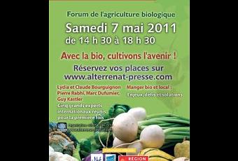 le forum de l'agriculture biologique Avec la bio, cultivons l'avenir ! le 7 mai 2011 à Toulouse-Labège - Centre de congrès Diagora, avec la participation de Pierre Rabhi, Marc Dufumier, Lydia et Claude Bourguignon, Guy Kastler.