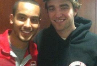 Nous le savions déjà Robert Pattinson est un fan de foot et plus particulièrement de l'équipe d'Arsenal (Voir la vidéo ci dessous) .Le voici donc sur cette photo dans la position du fan posant au côté d'un de ses idoles. Le jeune homme étant l'attaquant international anglais Theo Walcott ,il joue actuellement pour l'équipe anglaise d'Arsenal.