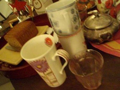 comme ces poissons, nous nous somme regroupées autour de la table. Des échanges, des idées créatives, des appareils photo (pour les bloggeuses) ou des carnets de dessins sortis ici et là, des paroles de vie, de blog, des rencontres, des retrouvailles…Un magnifique moment en dehors du temps (il suffit de savoir à quelle heure je suis partie) où j’ai pû rencontrer certaines dont je connaissais une fenêtre de vie (leur blog) : cette chère mademoiselleFenêtre sur la cour , Caroline, aussi sensible, attentionnée et débordante d’affection que ce que j’espérais, Zoéchiffon toute enjouée et pleine d’énergie du PetitbazardeBetsileo, Virginie, mais non VGM, anciennement niniegm, aussi enthousiaste et joviale que ces tableaux et écrits de Barbouillages et papotages (entre autres), Florizelle, aussi féérique, mystérieuse et attachante que son Divan Fumoir Bohémien laissait entrevoir, Bridget et sa sensibilité, c’est vrai qu’elle ressemble à ses tableaux (douceurs et poésie) et La trollette aussi espiègle que je le pensais de Toujours du safran dans le boudoir … il y avait d’autres charmantes compagnies dont des bloggeuses chez qui j’avais jeté un coup d’œil en passant : Jussara et Kristinm … et des amies de la vraie vie de Sa Marraine…