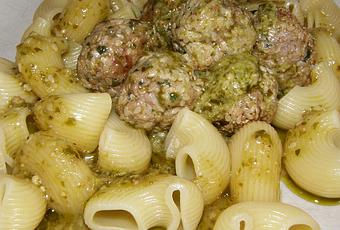 Faites cuire les Pipe Rigate , quand les boulettes sont prêtes ainsi que les pâtes versez sur les boulettes la sauce Pesto Basilic poursuivez le temps de chauffe 3 minutes à feu doux en remuant et servez sur les pâtes!