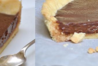 Ingrédients pour un fond de tarte de 25 cm :- La pâte sablée :125 g de beurre à température ambiante250 g de farine1 jaune d'oeuf75 g de sucre semoule30 g de poudre d'amandes1 pincée de sel- L'appareil poire/chocolat :200 g de chocolat noir250 g de crème liquide50 g de beurre mou1 poireRéalisez la pâte sablée : dans un saladier, mélangez la farine et le jaune d'oeuf. Ajoutez le sucre, le sel et incorporez le beurre. Malaxez bien jusqu'à former une boule de pâte. Filmez cette boule et réservez-la au réfrigérateur pendant 30 minutes.Au bout de 30 minutes, disposez une feuille de papier sulfurisé au fond de votre moule à tarte et étalez votre pâte au fond, en essayant de respecter une certaine régularité dans l'épaisseur du fond de tarte. Utilisez un rouleau à pâtisserie si besoin. Eliminez le surplus de pâte. Préchauffez le four à 180°C. Posez une autre feuille de papier sulfurisé sur la pâte, recouvrez de petits cailloux ou de haricots secs, et enfournez pour 25 minutes.Pendant ce temps, faites fondre le chocolat noir au bain-marie. Dans une casserole, portez la crème liquide à ébullition. Versez alors la crème chaude sur le chocolat fondu en fouettant. Ajoutez le beurre mou et mélangez bien.Epluchez la poire, coupez-la en 4 quartiers, ôtez le coeur. Coupez chaque quartier en très fines lamelles, comme si vous réalisiez un carpaccio.Quand la pâte est cuite, sortez-la du four. Retirez les petits cailloux et la feuille de papier sulfurisé. Versez la moitié du chocolat au fond. Répartissez les lamelles de poire, puis recouvrez avec le reste du chocolat. Laissez reposer au réfrigérateur au moins 3 heures.