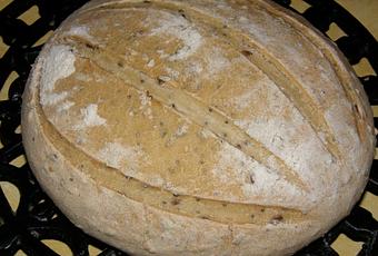 Saupourdez de farine faites des guignes et enfournez à four froid 55min à 230°. Sortez votre pain et laissez-le refroidir sur une grille.
