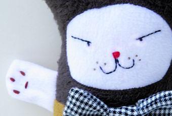 La seconde est réalisée avec de la polaire marron et blanche, un joli tissu Michael Miller et un tissu rayé vintage pour le noeud!!