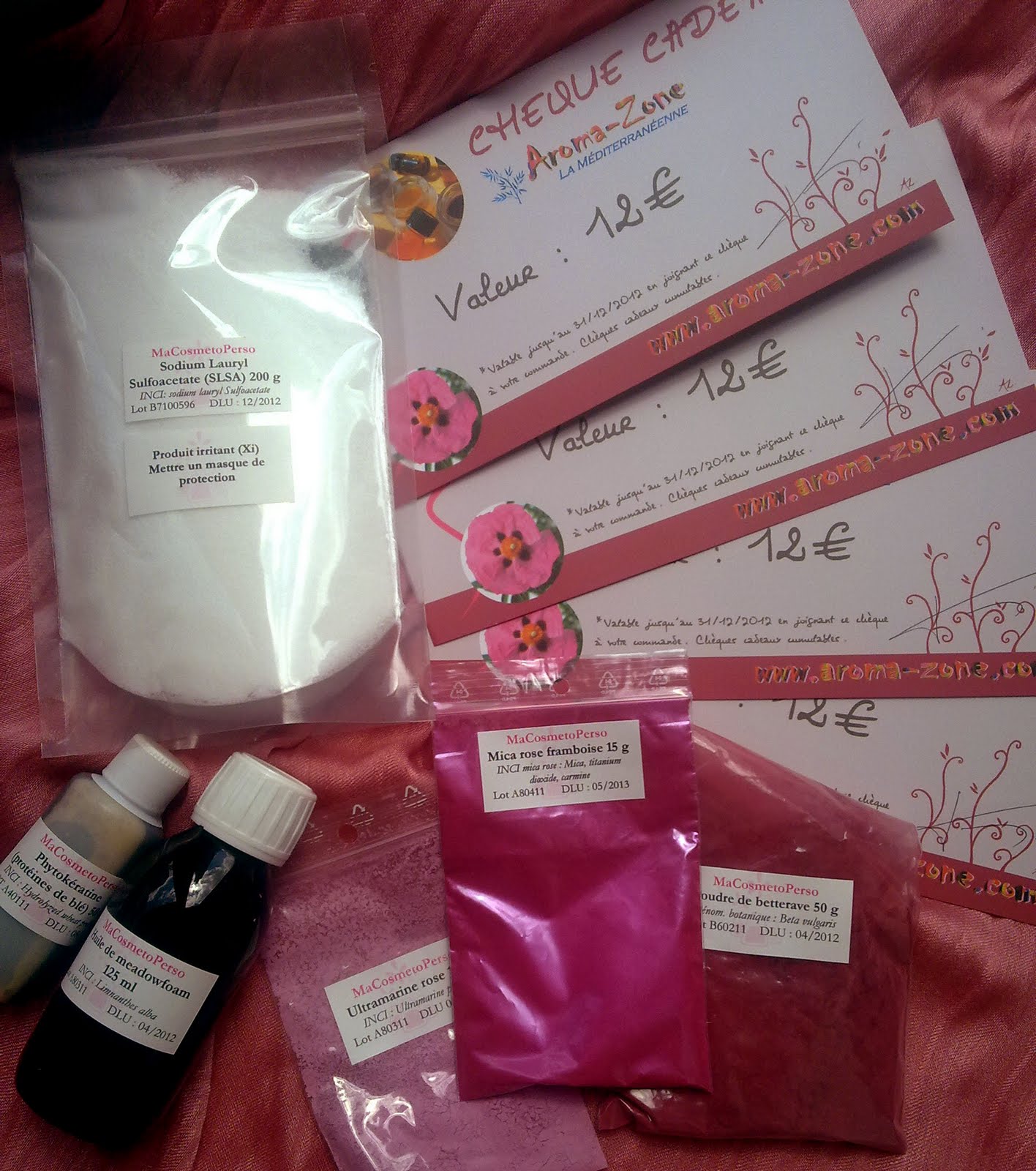 Alors...Le cadeau de Mary : 4 chèques cadeau de 12€ Aroma Zone, ça c'est trop trop top ! Encore mieux que la réduction bimensuelle d'Aroma Zone, waouh !