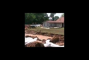De fortes pluies de prévue sur l'Arkansas, ne voulant pas voir sa maison sous les eaux, un homme a construit une digue autour de sa propriété !