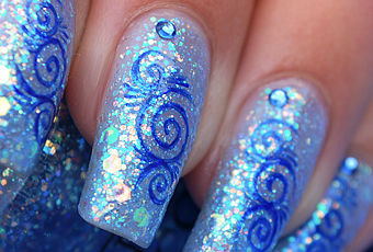 Voici un nail art que j'ai fais sur le superbe OPI de la collection Katy Perry (que j'ai réussi à enlever en plus de 30minutes...). Je n'avais pas trop d'idée de nail art, je trouve que c'est difficile de décorer un pailleté sans vite tomber dans le kitsch (que je déteste lol) ou le too much. Bref j'ai juste dessiné quelques spirales au pinceau fin en m'inspirant d'un de mes brush dans Paint Shop Pro.