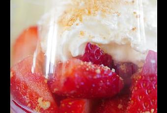 Passer les biscuits au blender pour les réduire en chapelure et parsemer sur les fraises.