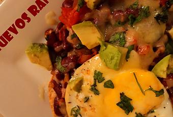 Ce mets est en fait un petit-déjeuner mexicain rendu très populaire aux États Unis. Il s'agit d’œufs frits servis sur une tortilla grillée avec une salsa à la tomate et au piment. Le plat est habituellement accompagné de haricots frits et de tranches d'avocat ou de guacamole. La recette présentée ici est une version ''américanisée'' de ce plat. Vous pouvez remplacer les haricots par des haricots frits, pour plus d'authenticité.