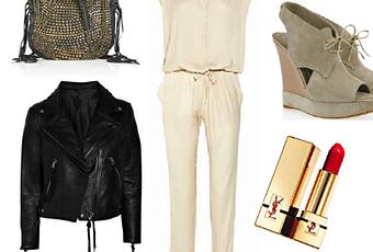 Moi je diiiis ouiiiiii ! Magnifique combi by Iro, comptez environ 300 € pour celles qui le peuvent ! C'est juste le modèle parfait, une coupe seventies, de jolies matières, une couleur crème que l'on rève d'assortir avec une veste en cuir Acne (700$), les petites wedges de Donna Karan (620 €) , un sac rock by Antik Batik (450€) et le superbe lipstick rouge by Yves Saint Laurent (27 €)! assortis...je vous laisse saliver et surtout rêver :) !!!