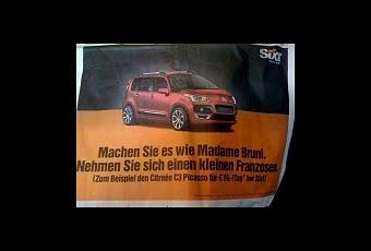 De l’autre côté, c’est l’actualité du couple présidentiel qui est gentiment épinglée par la nouvelle campagne publicitaire d’un loueur de voiture. Sixt s’est fait plaisir avec ce slogan : "Faites comme madame Bruni, prenez un petit modèle Français ». Amusant, vraiment, mais rappelons que les classes moyennes ne roulent ni en Porsche, ni en 4X4, ni en monospace, mais de plus en plus en voitures low-cost.
