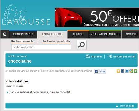 Veuillez noter amis non bordelais, que le mot CHOCOLATINE fait une entrée officielle et fracassante dans la langue française ! Moi chauvin ? Tout à fait !