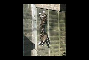 Ce chat, Lloyd, grimpe en quelques secondes sur une palissade haute de plus d'un mètre pour récupérer un bout de jambon.