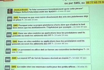 Ensuite, le principe est simple. Sur une interface web, tous les messages reçus via Twitter et SMS sont centralisés. Une interface d’administration permet de modérer les messages, pour éventuellement supprimer les messages d’insultes, diffamatoires… ou ceux qui sont carrément hors sujet.