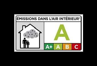 L'étiquette indique, de manière simple et lisible, le niveau d'émission de polluants volatils: une note allant de A+ (très faibles émissions) à C (fortes émissions) et le schéma d'une maison contenant un nuage de polluants, permettront d'identifier rapidement la qualité du produit.