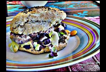 Pour l'atmosphère de ces burgers, elle a trouvé l'inspiration à Hawaï, alors l'avantage c'est que rien que la lecture de la recette vous transporte sous les cocotiers, horizon azuréen, roche volcanique noir charbon et sable blanc. Si comme moi, vous décidez de faire vous-même vos buns alors là c'est bingo. Ce burger tout simple condense des épices, des graines et en y ajoutant notamment des graines d'anis étoilé, l'extase est proche.