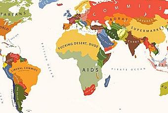 L’artiste Yanko Tsvetkov a dessiné une carte du monde, vu par les États-Unis… Une simpliste qui pointe les clichés dont chaque pays où région du monde peine à se débarrasser.