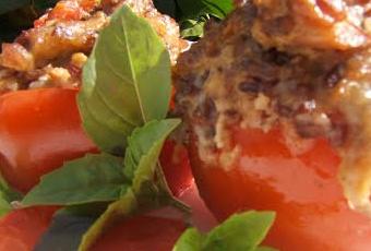 Tomates farcies au canard et riz rouge de camargue Recettes pour : 10 à 12 tomates